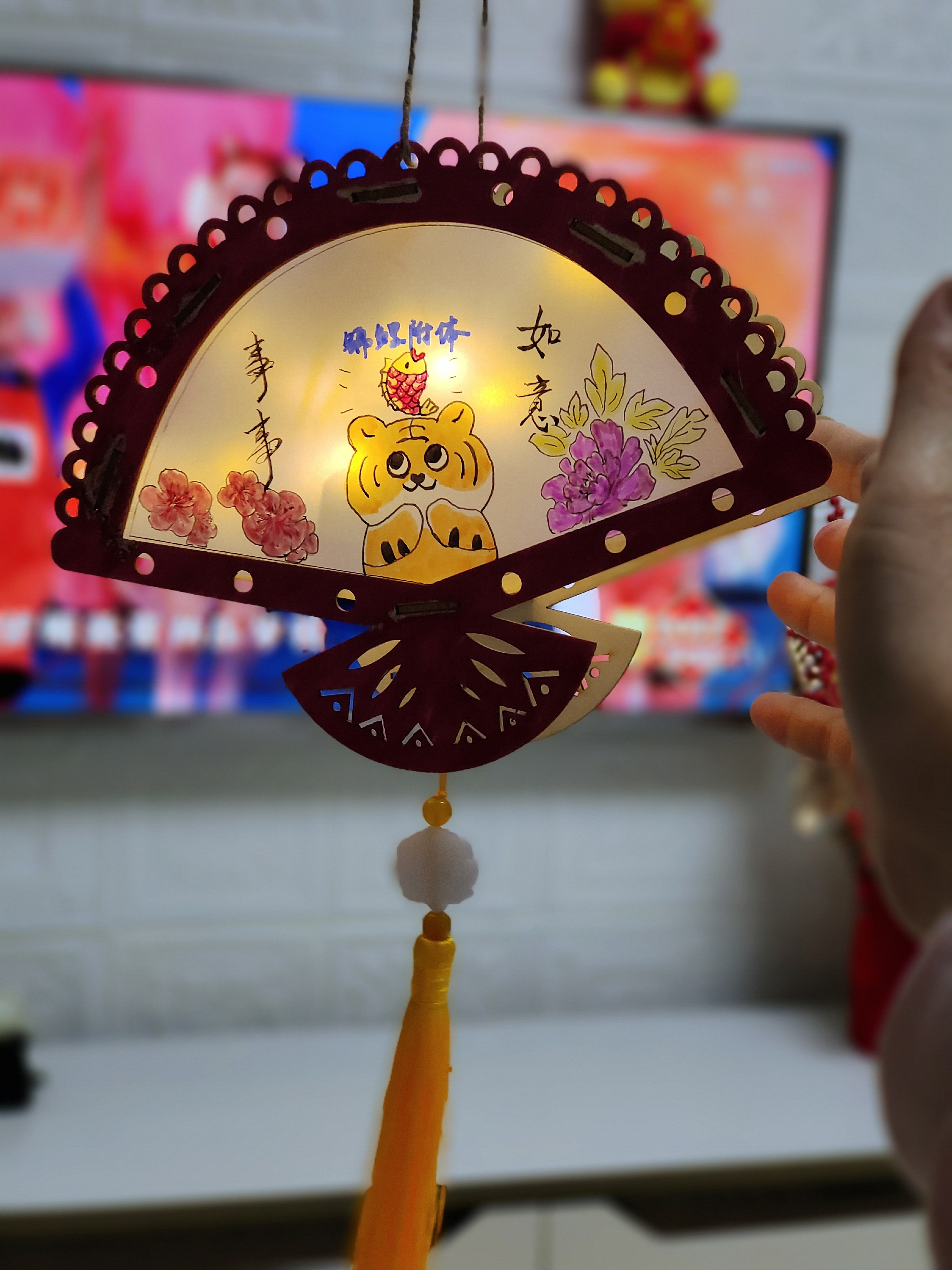 猜完燈謎,就到了大家最期待的做花燈環節。大家拿到材料包后,迫不及待地打開研究起來。集團的小哥哥小姐姐們小心翼翼修剪、鏤空好燈面,并仔細地將不同的燈面粘貼、拼接起來。最后給燈籠掛上流蘇,頂部裝好燈桿,內部插上彩燈后,一個精美的元宵燈就誕生了。“這是我親手做的燈籠,象征幸福、祥和,簡直太好看了!”做好燈籠的邵山成就感滿滿,興奮地和燈籠合影留念。