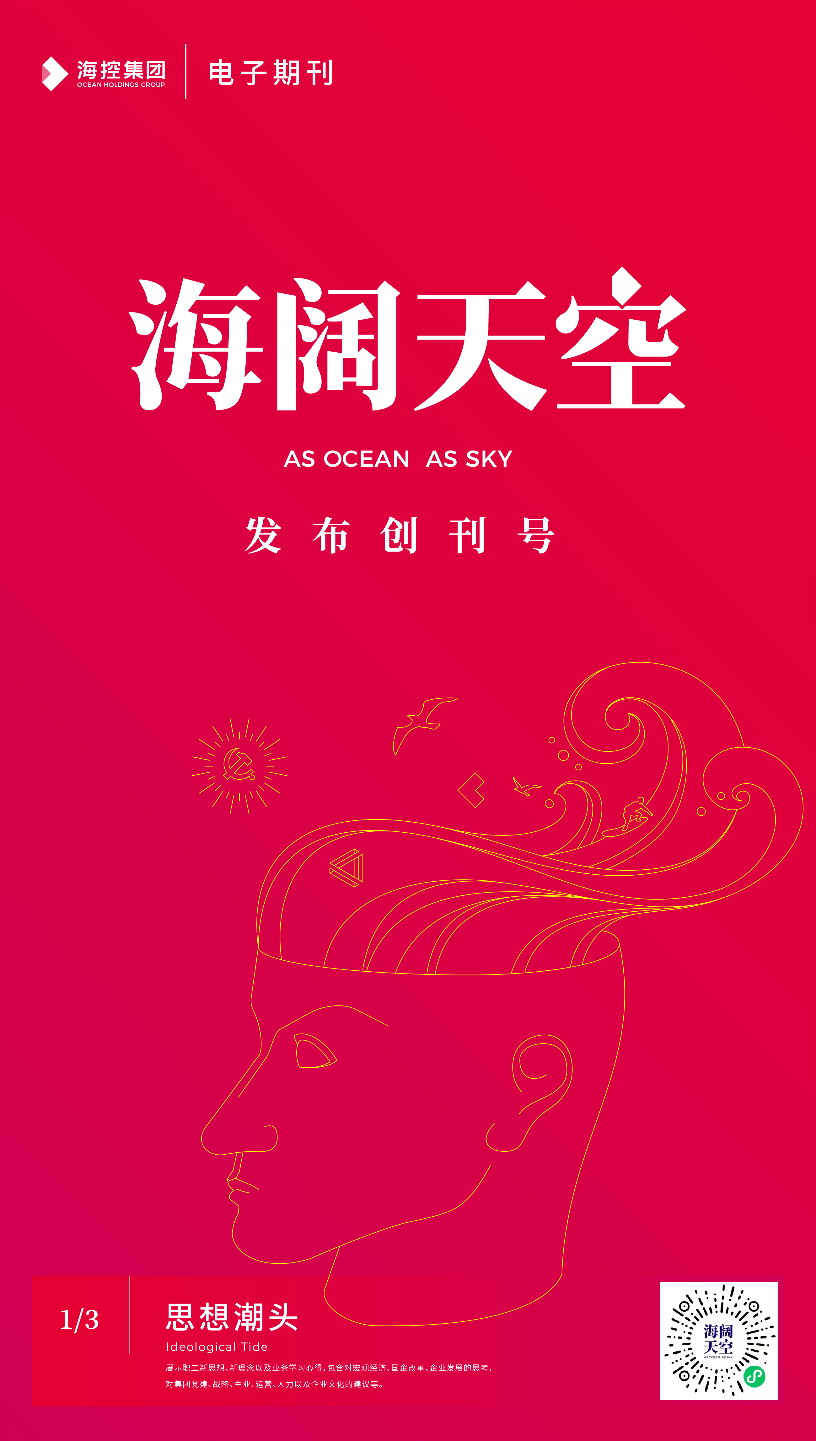 為進(jìn)一步豐富集團(tuán)企業(yè)文化載體,打造“協(xié)同、創(chuàng)新、活力”的海控大家庭,我們創(chuàng)立了“海闊天空”電子期刊,這是一個思想交流的平臺,像海洋一樣廣闊,像天空一樣高遠(yuǎn),在這里可以碰撞思想的火花;這是一個才華展示的平臺,海闊憑魚躍,天高任鳥飛,是金子就能發(fā)出耀眼的光芒;這是一個情感溝通的平臺,表達(dá)情感、分享快樂,構(gòu)筑你我的精神家園。