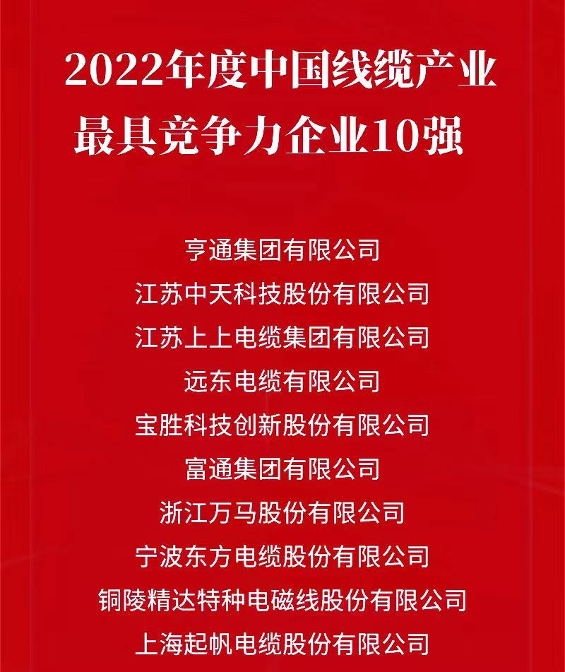 ▲ “2022年度中國(guó)線纜行業(yè)最具競(jìng)爭(zhēng)力企業(yè)10強(qiáng)”榜單